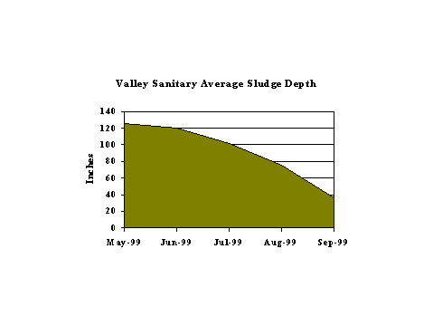 average sludge depth which occurred at Valley Sanitary in 120 days: